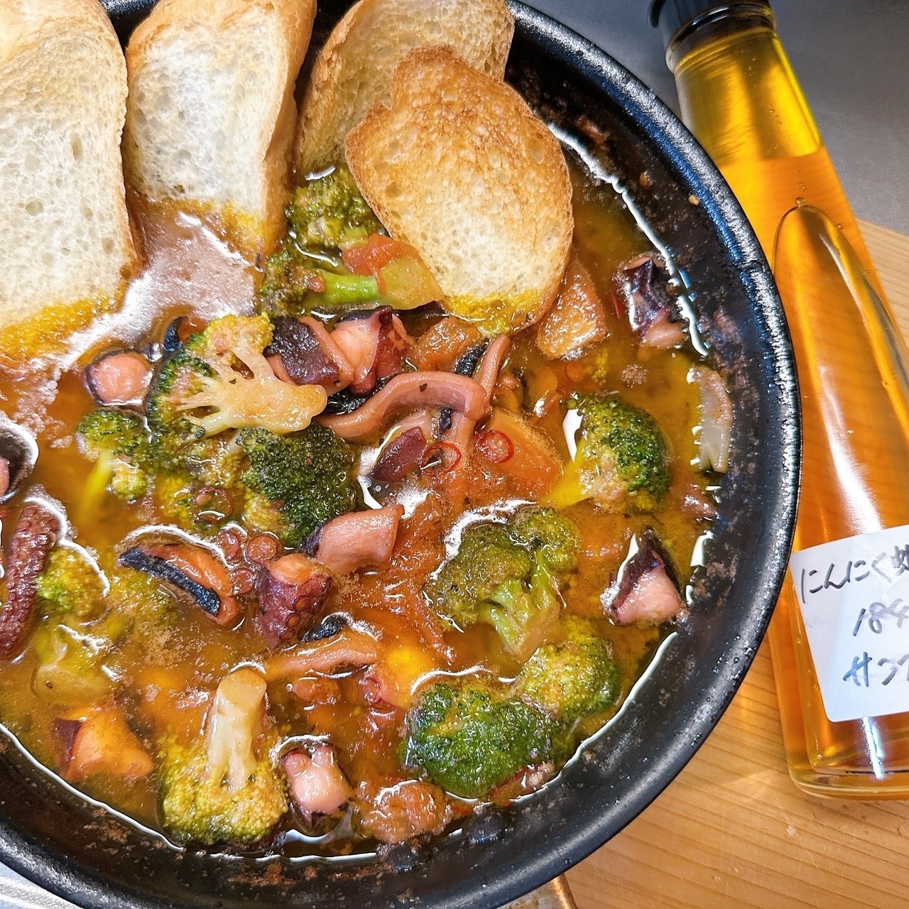 甘エビの頭を粉砕して濾したエキスを使用したエビ風味のガーリックオイル。
